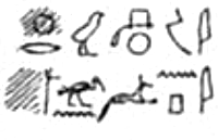 Lepsius-1849-1859 I, p.158 : On the coffin there was a small wooden statue of the deceased, on the base in black cursive hieroglyphics on the white stucco coating was the inscription: