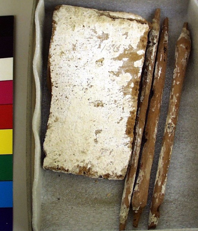 Hearst: Hearst web site: Box, bottom: 6-1755A Grinding stick: 6-1755B Box fragment: 6-1755C Tomb model Cemetery 3500; Tomb 256 Naga-ed-Der Cemetery 3500 Wood, gesso, paint | |