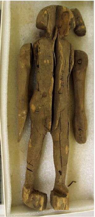 Hearst: Hearst web site: Wooden male figure, cracked arms are detached Tomb model Egypt, Cemetery 3500; Tomb 79 Naga-ed-Der Cemetery 3500 Wood, gesso, pigment | |