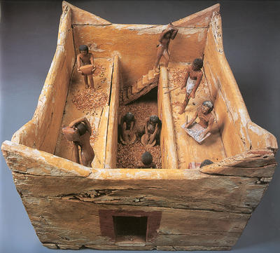 Wooden models of boats were also an essential component of the burial assemblage. These are thought to be intended to assist the deceased make a magical pilgrimage to and from Abydos. Such boats were some of the most intricate and well crafted of the tomb models. Partly for this reason, they have been better published and studied than the other "models of daily life".
